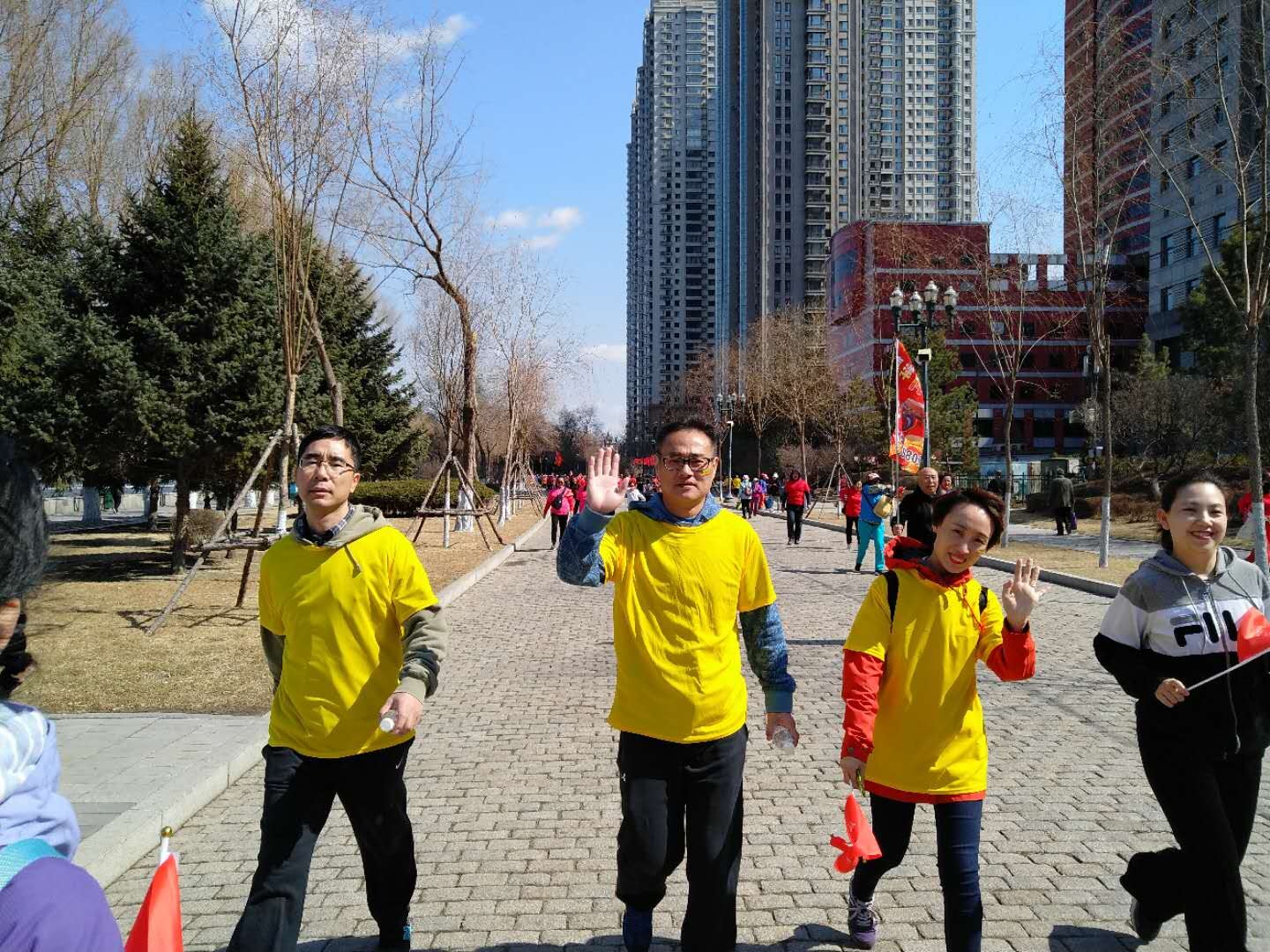 All the staff gathered at the “flood control memorial tower” at 7:30 a.m. and the staff of the Ministry of Administration distributed the activities to everyone. They started at 9:00. The activities took place through People's Square, Nine Stations Park and Music Park. The end point was the Qunli Music Corridor, which covered about 6 kilometers.
