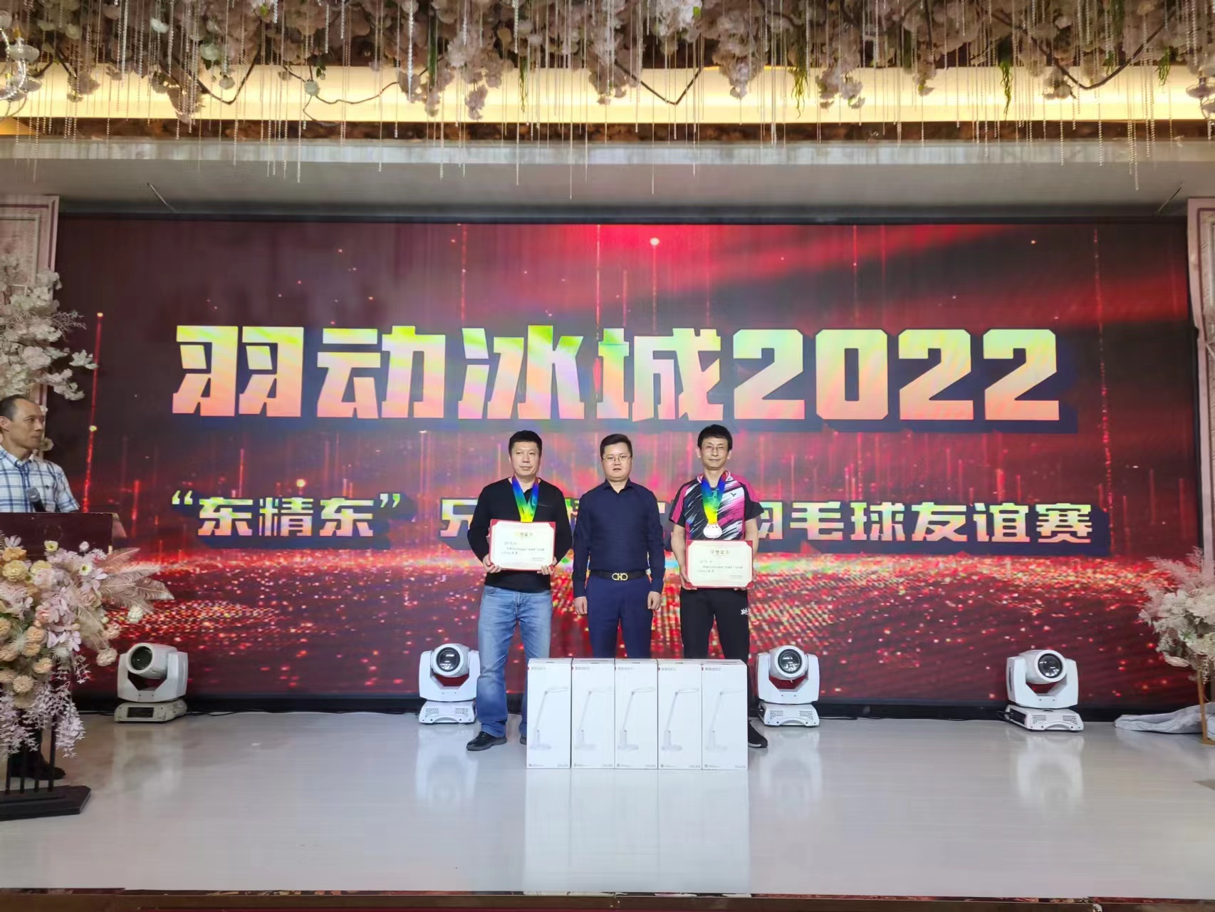 Mr. Zhang Zhongkai, chairman of Dongsheng Group, made a speech at the dinner after the friendship game. In order to respond to the call of the general secretary and develop sports, the 2022 "Dongjing East badminton game" was successfully held in the shortest time. First of all, I would like to extend my warm congratulations to the "incomparable" team event and the champion, runner up and third runner up of the doubles individual event. Secondly, I would like to express my heartfelt thanks to the sponsors of this competition. I would like to thank Yu Qun, general manager of Harbin import and Export Group, Han Xiaowei, general manager of Beiqishen group in Daxing'anling, Yang Song, general manager of Langjiu Heilongjiang company, Mr Ma,Mr ye,Mr Liao, Mr Fu from Shenzhen, and Mr Yuewen, former national team athlete, And Mr. Chen Jin, the world champion, the general consultant of "DongJingDong". Finally, Zhang Zhongkai thanked all the "DongJingDong" players who participated in this event and encouraged them to continue to improve their skills and exercise.