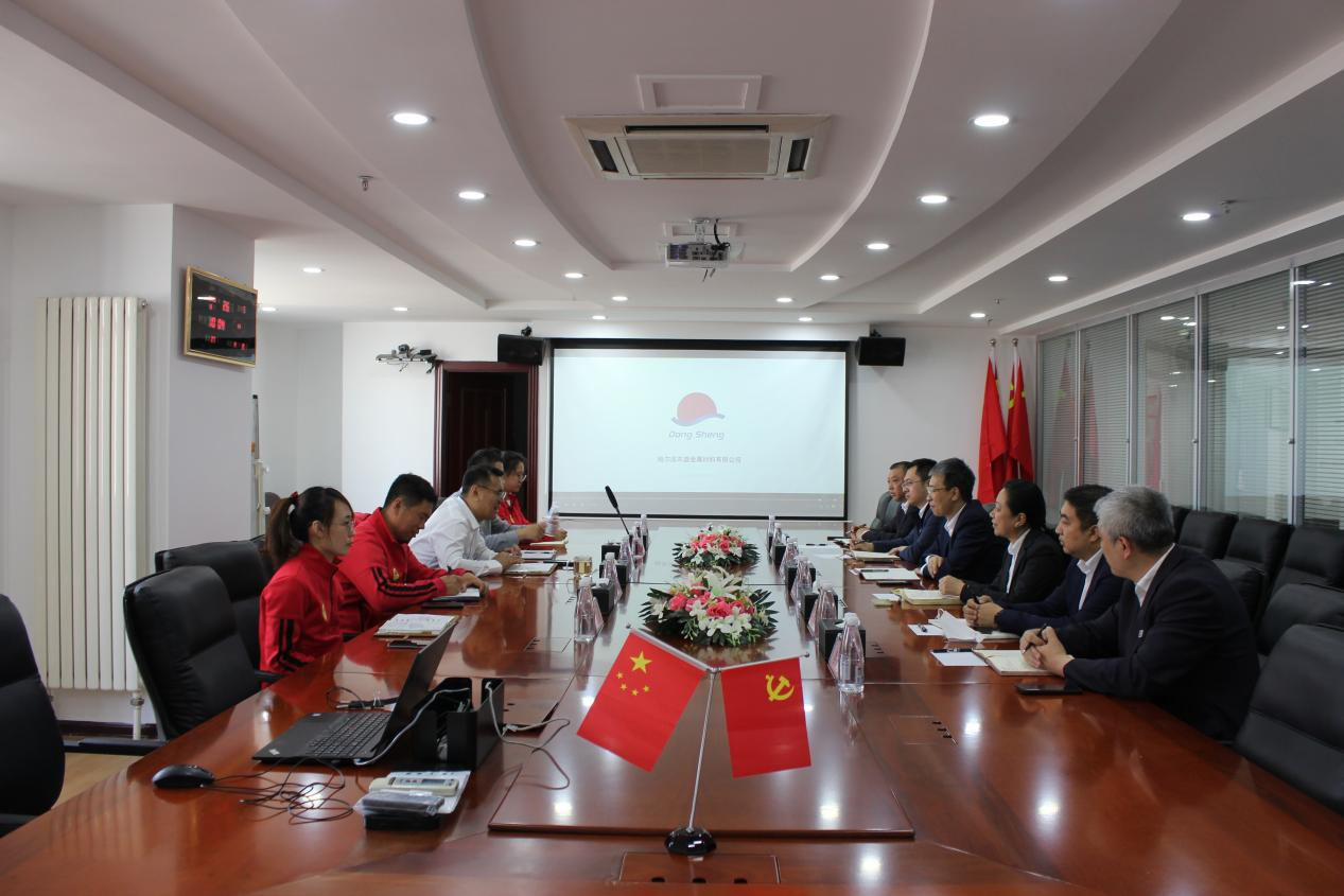 On the morning of May 26th, a delegation led by Gao Zhihong, Secretary of the Party Committee and President of Jinzhou Bank Harbin Branch, visited the headquarters of Dongsheng Group for inspection and exchange. Zhang Zhongkai, Chairman of Dongsheng Group, warmly received the guests.