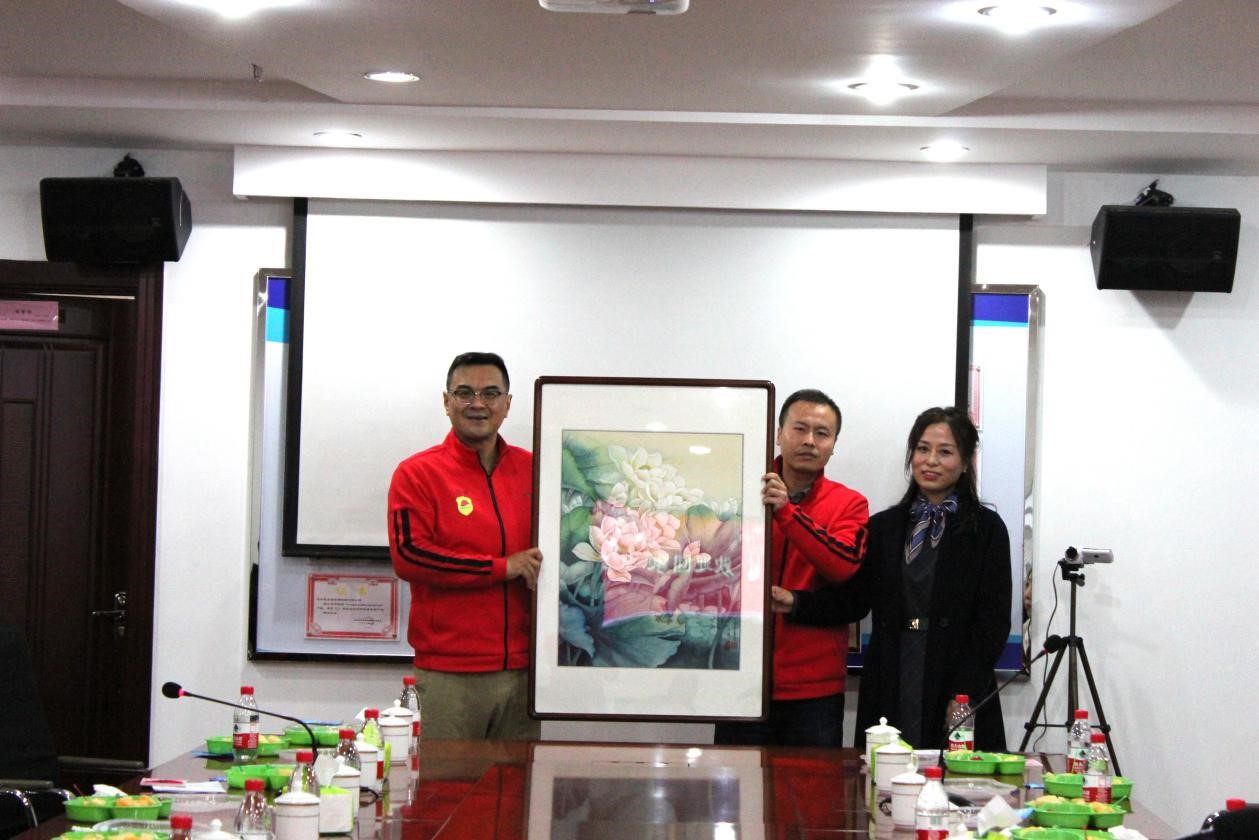 在座談會上,優(yōu)秀員工崔嘉攜夫人贈送張忠凱總裁一幅《清蓮圖》,祝愿公司越來越好,行業(yè)內(nèi)一枝獨秀。