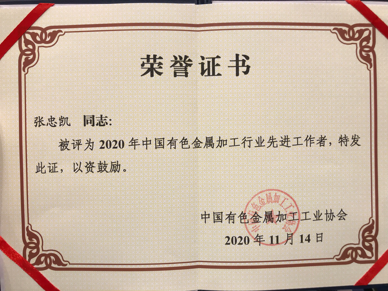 為推動(dòng)行業(yè)高質(zhì)量發(fā)展,加工協(xié)會(huì)對(duì)部分突出貢獻(xiàn)人物、優(yōu)秀企業(yè)家進(jìn)行表彰。會(huì)上,文獻(xiàn)軍副會(huì)長(zhǎng)、范順科副書(shū)記為“2020年中國(guó)有色金屬加工行業(yè)先進(jìn)工作者”進(jìn)行頒獎(jiǎng),東盛金屬總裁張忠凱獲此殊榮。東盛金屬當(dāng)選新一屆理事單位。