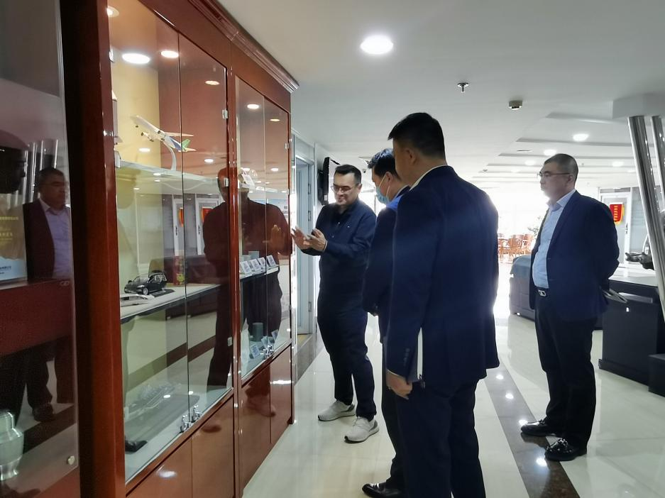 圖1:張忠凱帶領(lǐng)來賓參觀東盛集團(tuán)總部并介紹公司產(chǎn)品