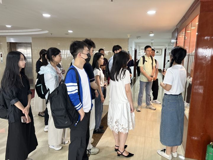 實(shí)踐隊(duì)員一行參觀了集團(tuán)總部,先后參觀了公司產(chǎn)品展柜、專(zhuān)利墻與企業(yè)文化墻,公司副總經(jīng)理周至陽(yáng)詳細(xì)介紹了公司發(fā)展歷程、經(jīng)營(yíng)情況、創(chuàng)新成果與企業(yè)文化等方面情況。