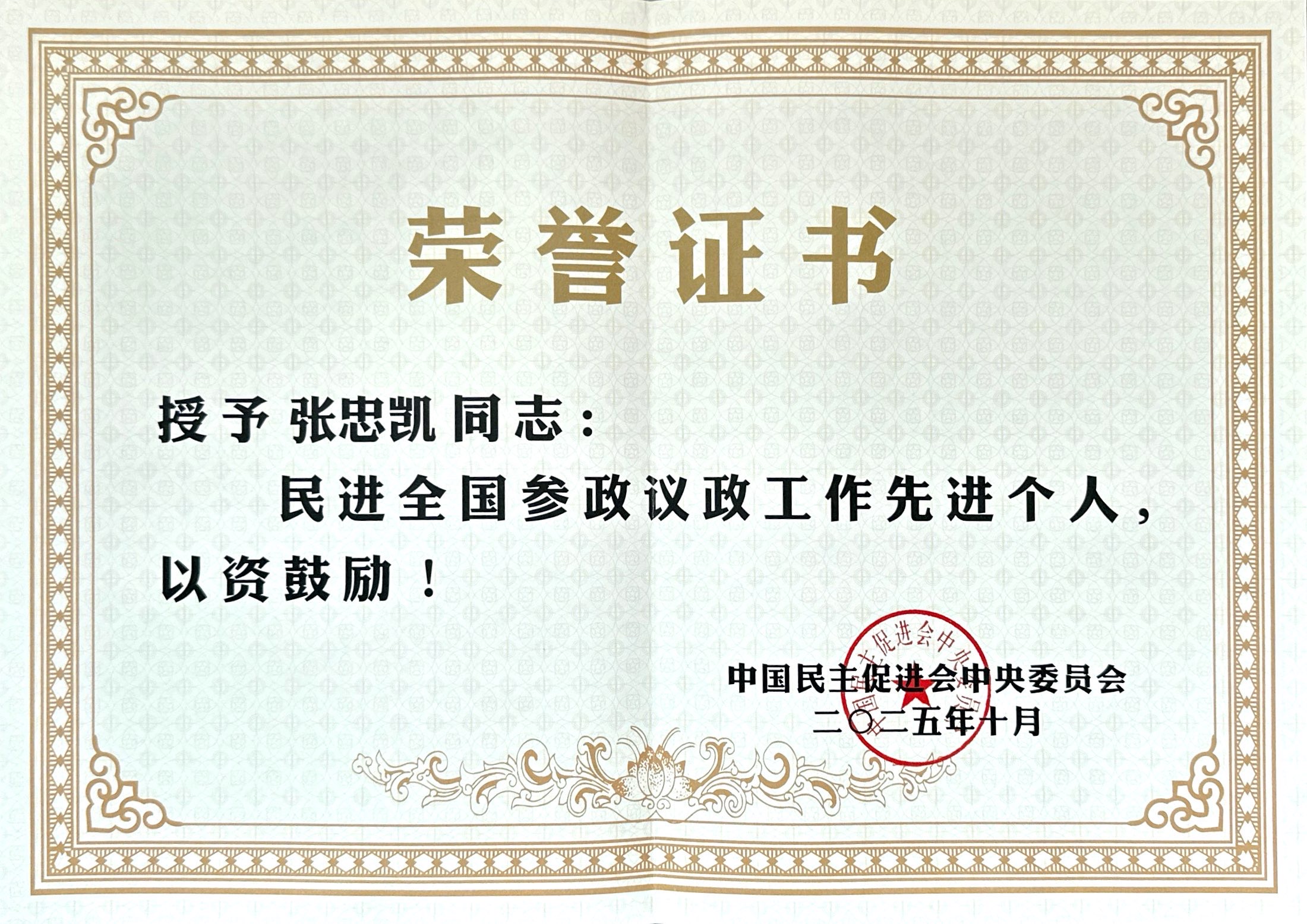此次授予張忠凱民進(jìn)全國(guó)參政議政工作先進(jìn)個(gè)人稱(chēng)號(hào),既是對(duì)其過(guò)往參與參政議政工作的高度肯定,更是對(duì)其未來(lái)履職的激勵(lì)與鞭策。張忠凱表示,將繼續(xù)以習(xí)近平新時(shí)代中國(guó)特色社會(huì)主義思想為根本遵循,充分發(fā)揮企業(yè)經(jīng)營(yíng)者的實(shí)踐優(yōu)勢(shì),持續(xù)深化調(diào)查研究,力求提出更多貼近實(shí)際、解決難題、有分量的真知灼見(jiàn)。同時(shí),他將繼續(xù)把參政議政與企業(yè)發(fā)展深度融合,秉持“實(shí)業(yè)報(bào)國(guó)”的初心,帶動(dòng)更多社會(huì)力量積極參與建言獻(xiàn)策。