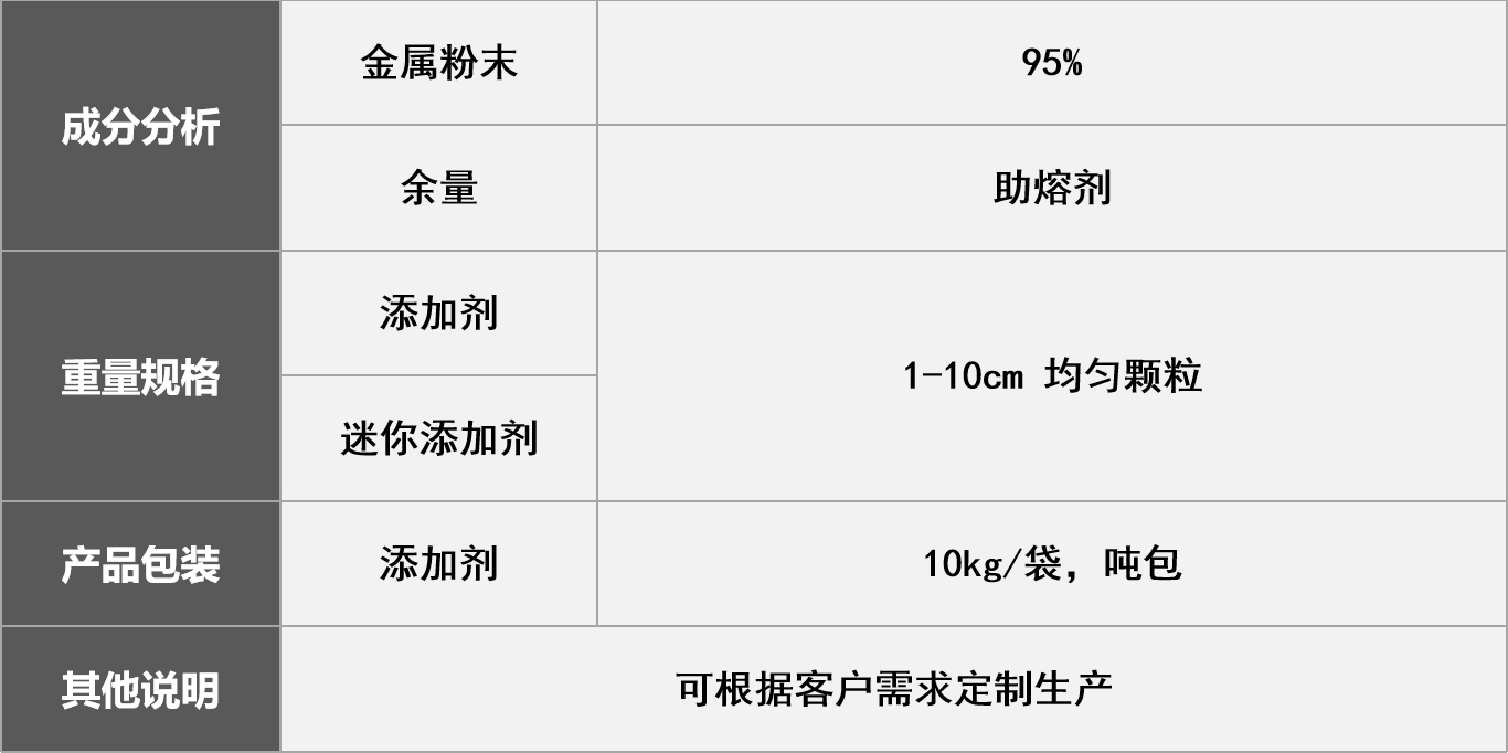 注:因用戶及爐次間冶金條件的差異,實際實收率與實際加入量應(yīng)以爐前化驗數(shù)據(jù)計算確定。